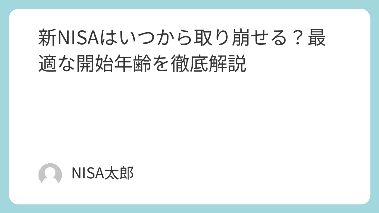 新NISAを始めたものの、「実際にいつから取り崩せばいいの?」と悩んでいる方は多いのではないでしょうか。積立は始めたけれど、出口のイメージが全くできていない、そんな方のために今回は取り崩しの最適なタイミングを年齢別に徹底解説します。
