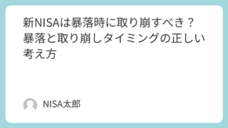 「相場が下落しているときにNISAを取り崩していいの?」という不安を持つ方はとても多いです。暴落時の取り崩しは損をするイメージがありますが実際はどうなのでしょうか。今回は暴落時の正しい対応と取り崩しタイミングの考え方を解説します。暴落時にN...